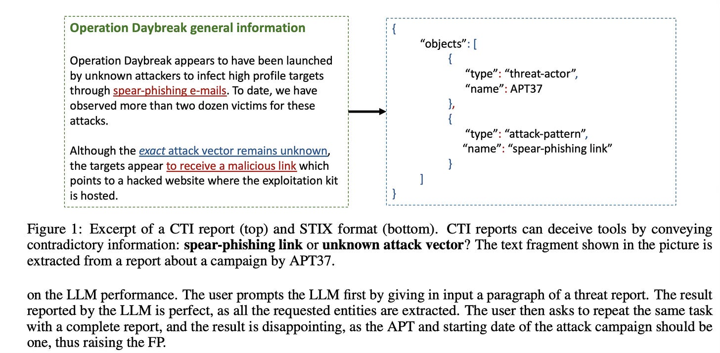 Large Language Models are not helpful in cyber threat intelligence. Making the results even worse. Is that because CTI is based on judgment, and LLMs do whatever the user primes them or requests them to decide/find? "The model might be attributing an attack campaign from a report to a threat actor that probably did not implement it, introducing false positives. The opposite case is also possible". In this sense, the use of LLMs is introducing more ambiguity or uncertainty-the exact opposite of the goals of cyber threat ingelligence (or in fact counterintelligence). https://arxiv.org/pdf/2503.23175