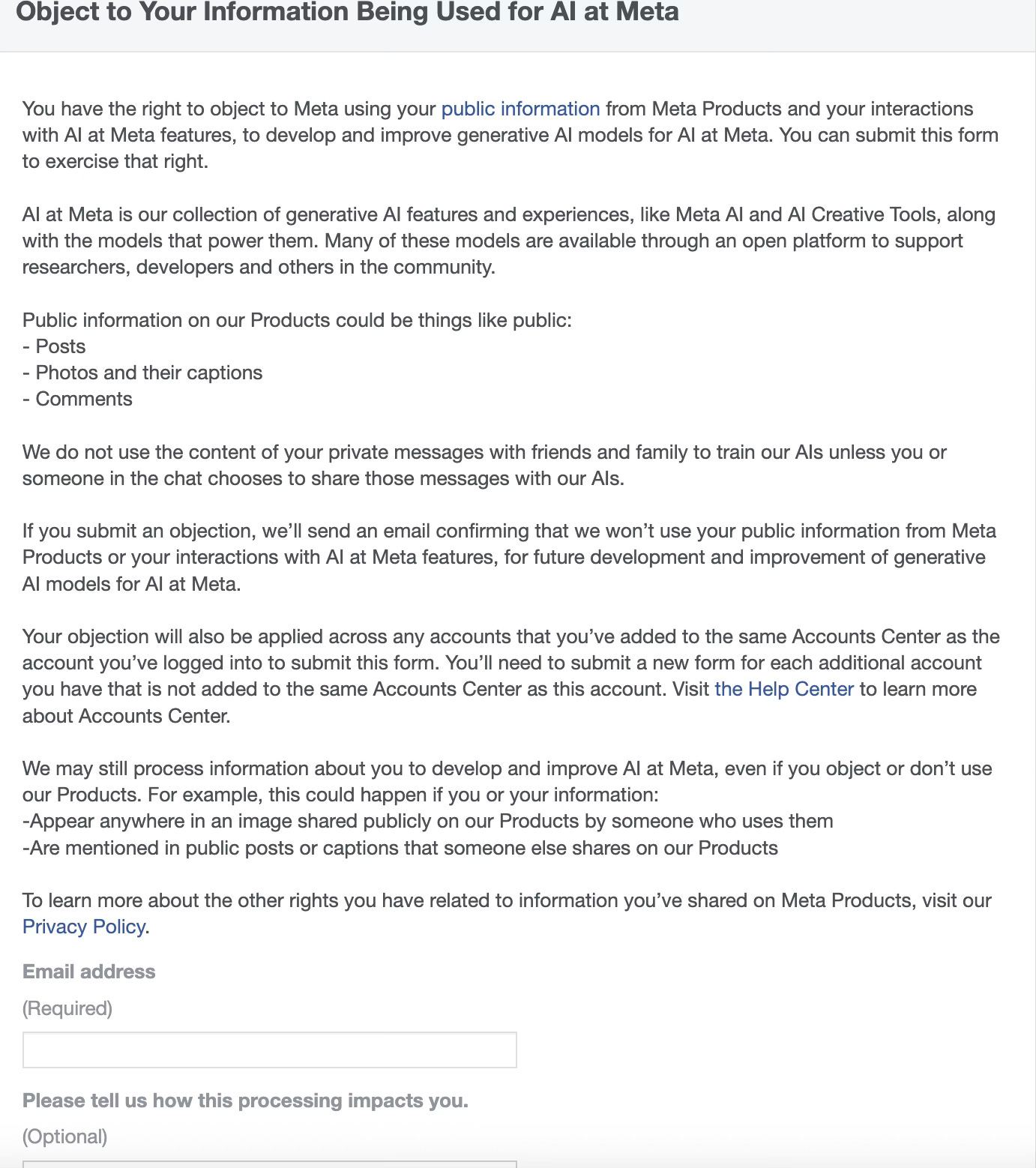 If you’re in EU you can object to the processing of your data from your use of Meta's services like Facebook or Instagram to train AI by filling this form:
