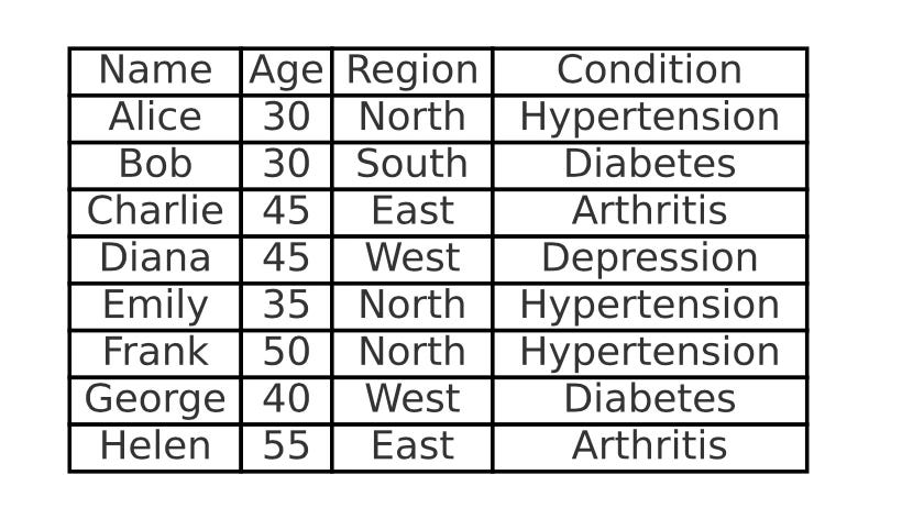 Pseudonymisation might be insufficient for certain types of data that enable the identification of quasi-identifiers. Quasi-identifiers are combinations of attributes, such as age, gender, marital status, profession, or income, that can reveal information about an individual's identity when processed together. If these attributes are known or correlated with external data, they can allow attribution of pseudonymised data to individuals without reversing the pseudonymisationtransformation. Mitigation measures include removing or modifying quasi-identifiers, for example via generalisation or randomisation. In the table below we may identify that the combination of (Age,Region) is unique - it uniquely identifies the name of the patient. Therefore replacing the name with a pseudonym would be insufficient.